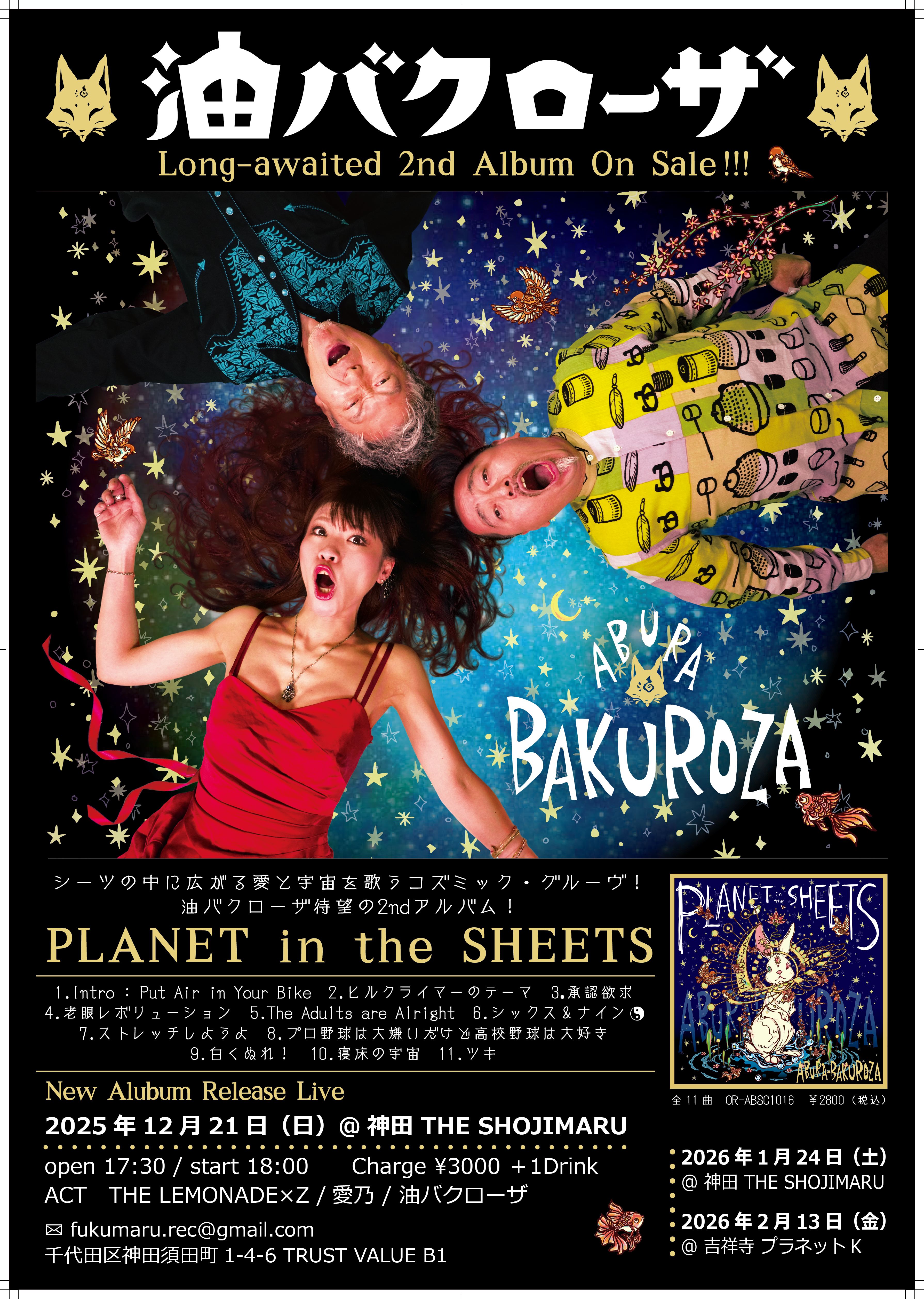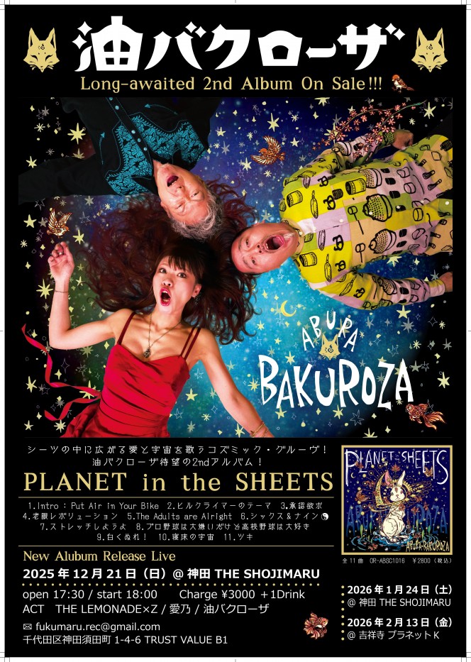3 油バクローザNewアルバム 「PLANET in the SHEETS」どうぞよろしく!